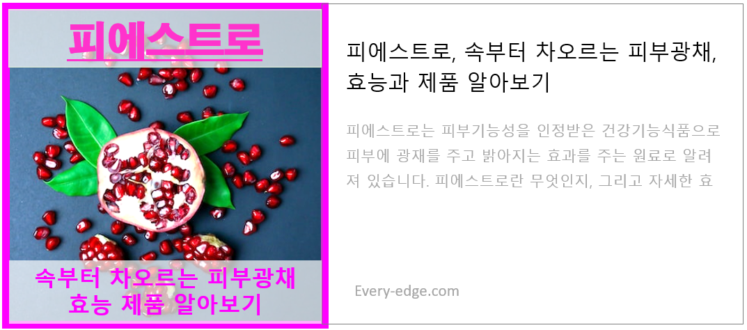 그리고 피부에 광채를 주고 밝아지는 효과를 주는 것으로 알려진 피에스트로 성분에 대해 자세히 알고싶으시다면 아래 포스팅을 확인하시기 바랍니다.
