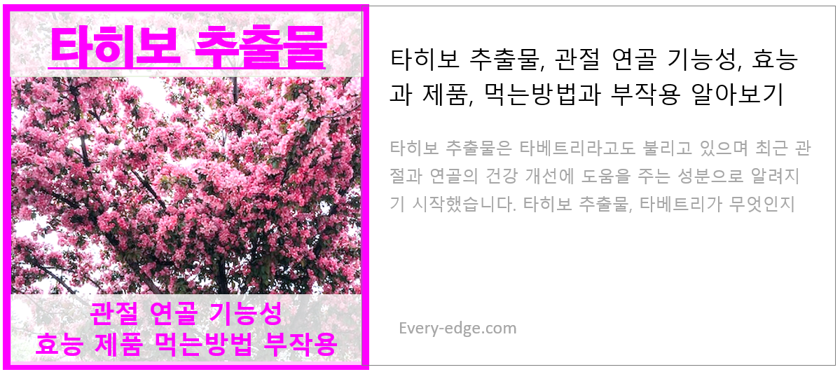 이외에도 아마존의 타히보 나무에서 추출한 또 다른 관절 신소재인 타히보 추출물, 타베트리에 대해 더 자세히 알고 싶으시다면 아래 포스팅을 클릭하고 확인하시기 바랍니다.
