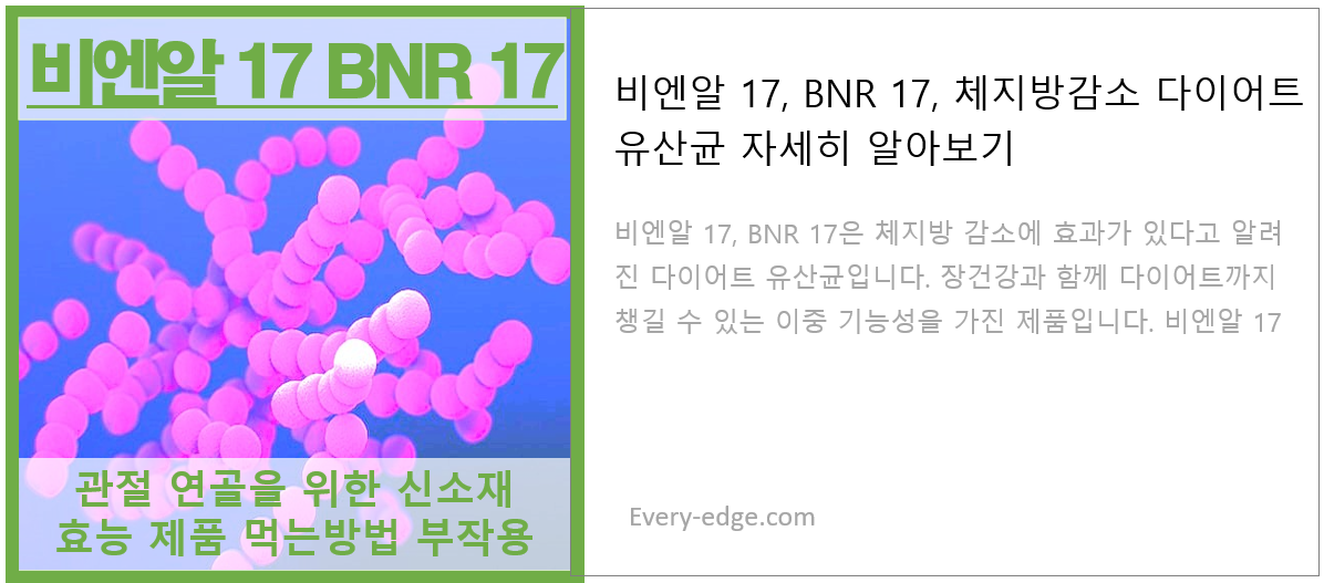 그리고 다이어트 유산균으로 체지방 감소에 효과가 있는 비엔알 17, BNR 17에 대해서 궁금한 점이 있으시다면 아래 포스팅을 확인하시기 바랍니다.